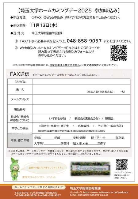 2025年度埼玉大学ホームカミングデーのご案内