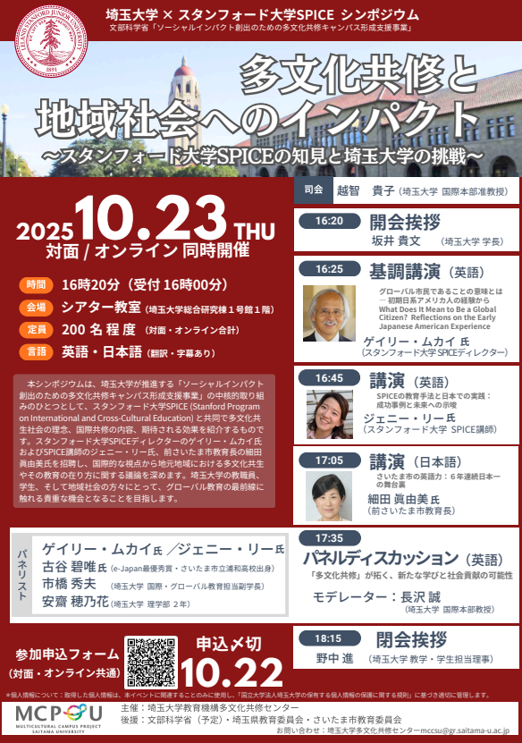 【10月23日(木)】埼玉大学×スタンフォード大学SPICE「多文化共修と地域社会へのインパクト」シンポジウムのご案内